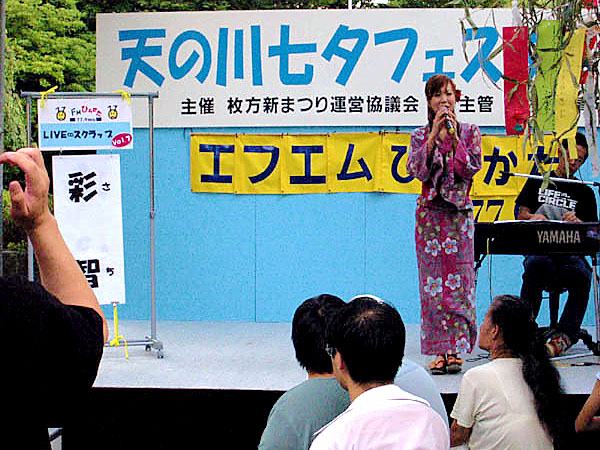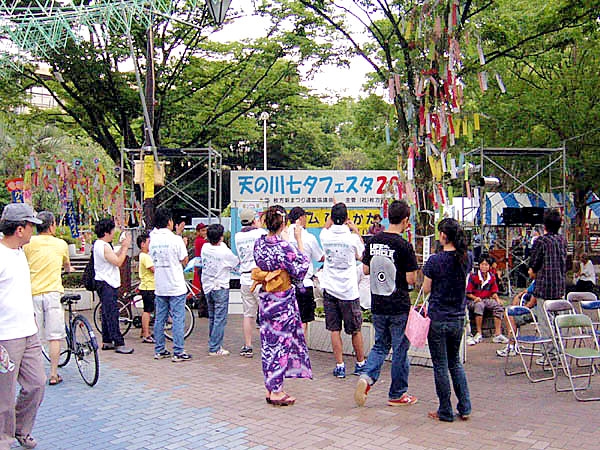 このおまつりは、今年から枚方新まつりの一環として開催され、楽団やチアガールの華やかなオープニングセレモニーが岡東中央公園の野外舞台で、市民会館ホールでは彦星・織姫コンテストなどが開かれた。