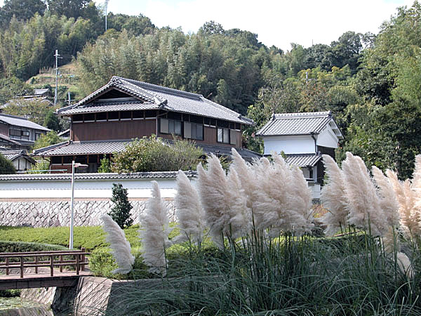 秋の陽射しが山里に降り注いで新池公園に植えられたシロガネヨシが銀色に光っている。白壁の蔵つきの大きなお屋敷が並ぶ穂谷3丁目の村落は、山懐に抱かれてのどかでゆったりとした気持ちにさせてくれる。