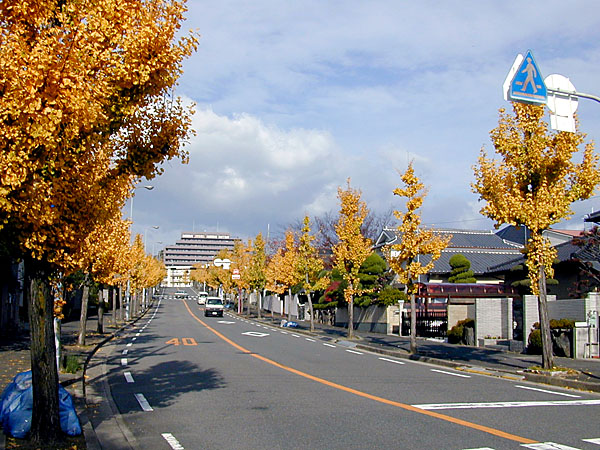 素晴らしい銀杏並木が続いていたが昨年交通の安全から大量の剪定が行われ、かっての盛り上げるいちょうの素晴らしい枝ぶりが損なわれ、銀杏の実も殆どつかなくなった。