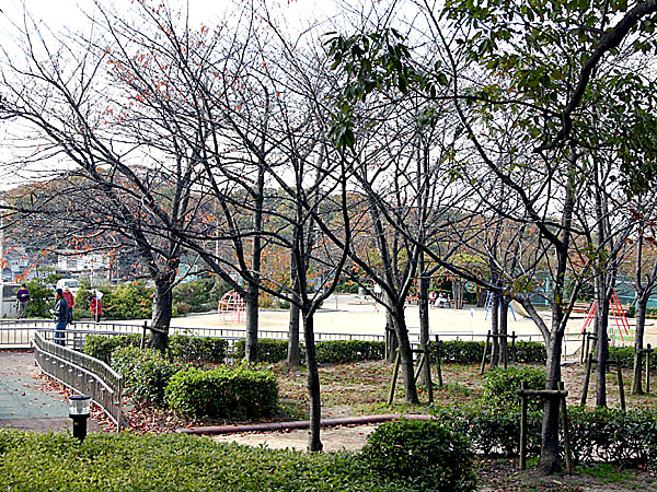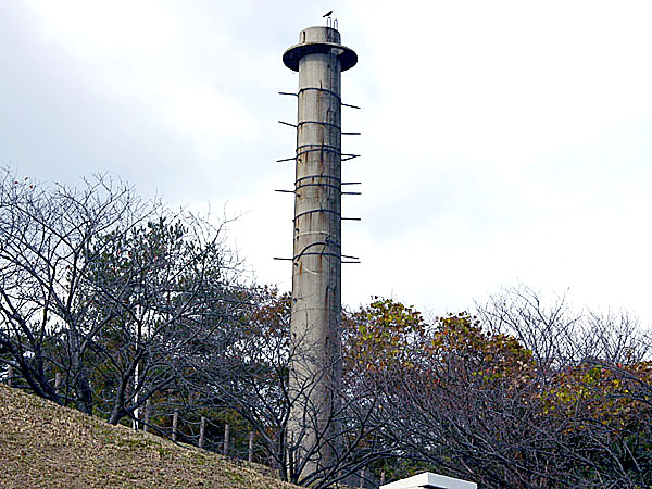 この公園のすぐ隣には市の妙見山配水場の給水タンクがあり、煙突がそびえている。この煙突は、この地区にあった戦時中の火薬製造工場の跡地が、戦後も殺人兵器工場として使われること無く、平和な住宅団地に生まれ変われたシンボル「煙突に寄せて平和を誓う」として残されている。