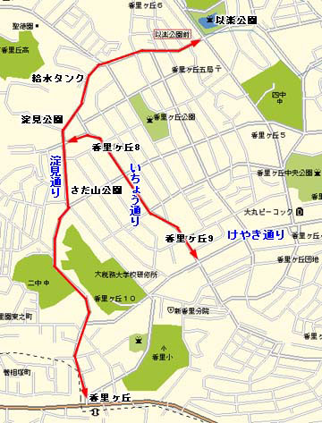 淀見通りは香里ヶ丘から以楽公園まで、香里丘陵の稜線に沿って香里団地を取り巻く外周道路である。