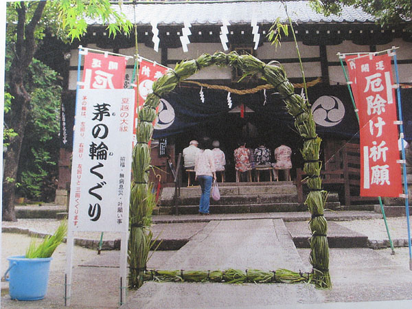 「夏越の大祓祭」と「師走大祓祭」があり、6月と12月の1年に2回行われます。夏は半年間の氏子、崇敬者の穢れを払う神事で、輪のようになった門を「左回り」、「右回り」、「左回り」で計3回くぐり、自分でお祓いをする「茅の輪くぐり」が行われます。師走は「除夜祭」を兼ねて氏子、崇敬者の1年間の罪穢れを祓い清めます。