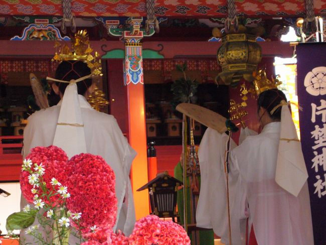 ◇神事祭典は、神主さん巫女さん初め、氏子の代表者約30名が社務所より身を清めながら整列する所から始まります。お祓いの後本殿礼拝所に入り、神楽や各団体代表の氏子さんが、玉ぐし奉納を行われます。 90分くらいの行事です。