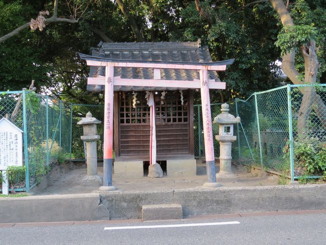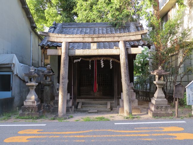 片埜神社の境内を出て200mほど東に行くと、消防署の両隣に境外末社の2社があります。すぐ近くに住宅や道路がありますが、 昔のままの姿で祀られています。