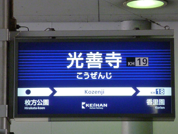 光善寺」駅の標識(京阪本線)