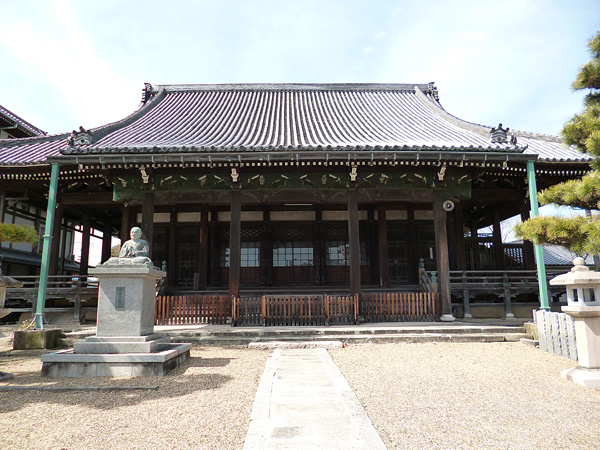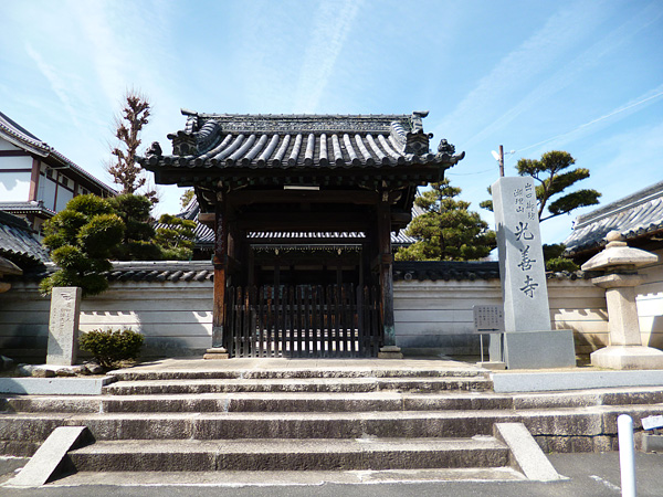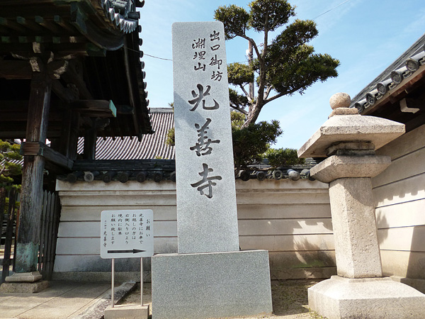 京阪本線「光善寺」駅の改札口を西側に出て、駅前ビル群の中を通り抜けると国道1号線に出ます。この1号線を横断し、北へ少し直進し左折して阪急「オアシス」の前を通って少し進むとお寺が見えてきます。これが今回の民話の舞台となる「出口御坊淵埋山(でぐちごぼうえんまいざん)光善寺」で、枚方市指定史跡になっています。
