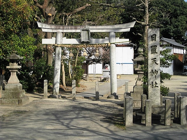 日置天神社には、惟喬親王(844~897)が交野ケ原で遊猟したとき、愛鷹の姿が見えなくなったので、日没を惜しんで、『日を止め置かせ給え』と天神に祈願したという伝承があります。中世におけるこの付近は、東高野街道筋に発達した集落(日置郷)として賑わい、社寺が豪華さを競っていたと伝えられています。