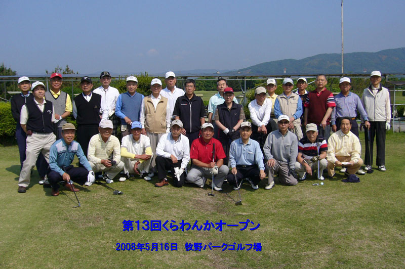 第13回のくらわんかオープンは2008年5月16日に牧野パークゴルフ場にて開催しました。絶好のゴルフ日和に恵まれ、無風・晴天の真夏日の下、平均スコアが89という結果で高スコア者が続出しました。27名参加中、栄えある優勝者は清飛羅さんでした。
