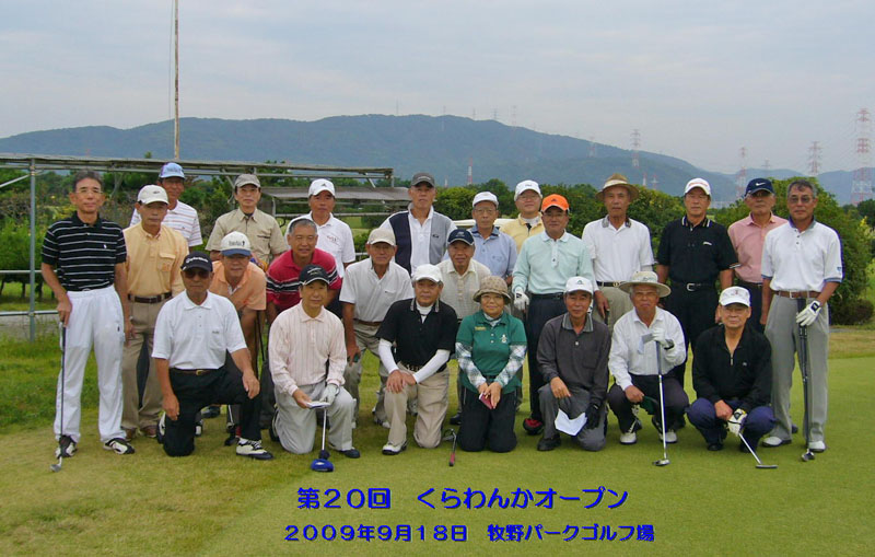 第20回くらわんかオープンは2009年9月18日に牧野パークゴルフ場にて開催、25名が参加されました。お彼岸が真近い秋晴れの好天に恵まれて、皆様楽しくプレーが出来たようでした。