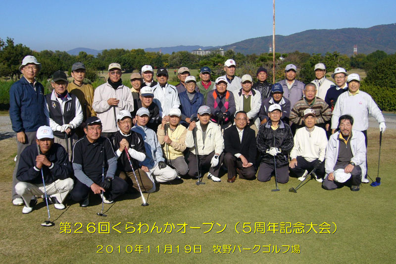 第26回くらわんかオープンは2010年11月19日に牧野パークゴルフ場にて開催し、30名が参加されました。5周年記念大会を祝うが如き快晴無風の素晴らしい天候に恵まれ、高スコアが続出しました。