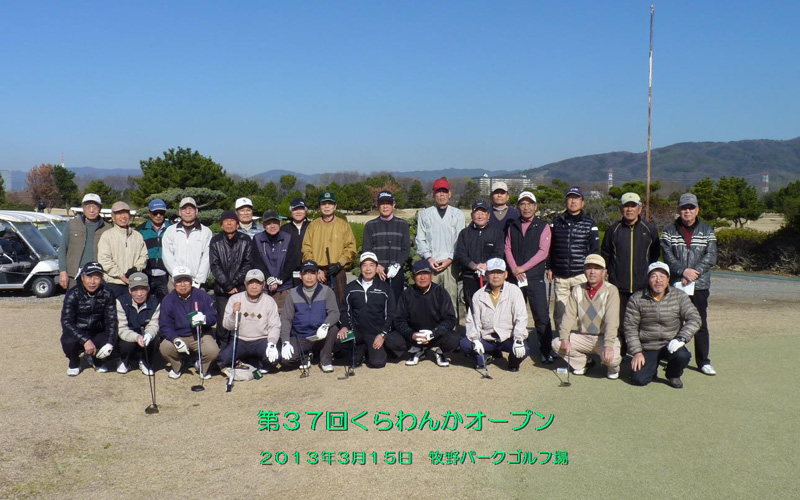 第37回くらわんかオープンは2013年3月15日に牧野パークゴルフ場にて開催し、27名が参加されました。彼岸入り間近の“ もう春ですよ!! ”と云う感じの晴天下で楽しいゴルフ日和となりました。