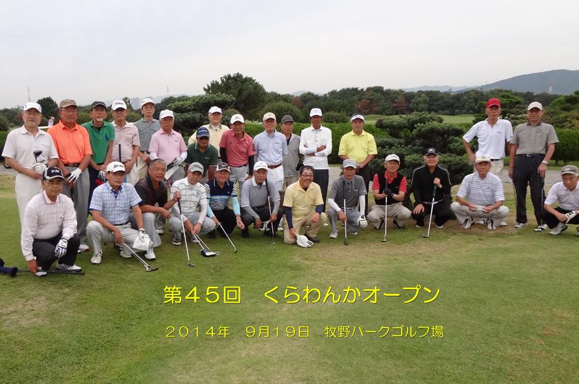 第45回くらわんかオープンは2014年9月19日に牧野パークゴルフ場にて開催し、27名が参加されました。気温も程よい曇天の下で、ハイレベルなプレーが続出し、快適なゴルフ日和となりました。栄えある優勝者は浅川渉さんでした。