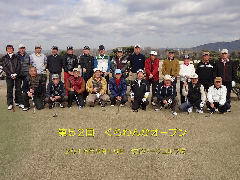 今年初の第52回くらわんかオープンは3月18日に牧野パークゴルフ場にて開催し、23名が参加されました。もう直ぐ桜が咲くような温かい天候で、曇天の下まずまずのゴルフ日和となりました。