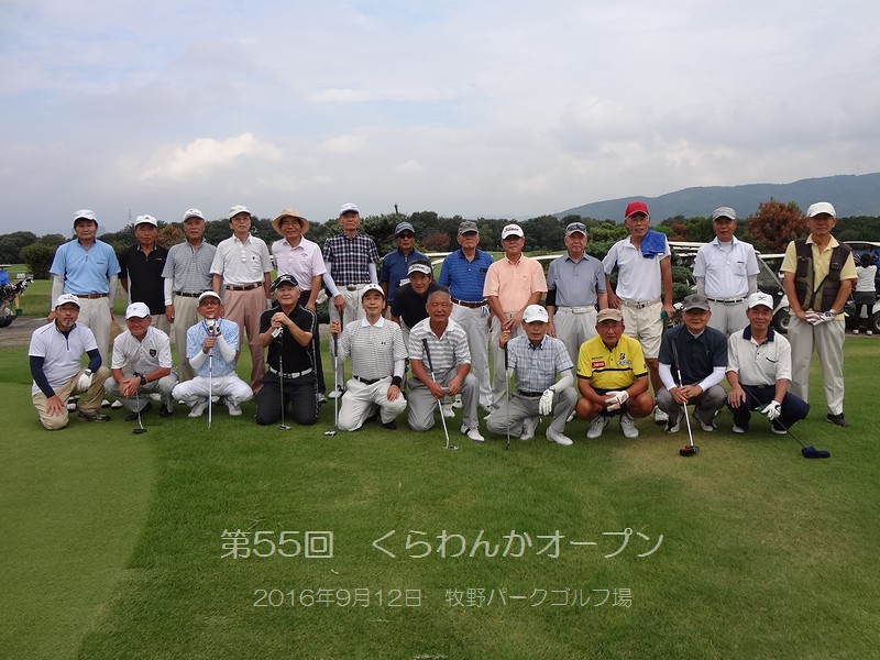 第55回くらわんかオープンは9月12日に牧野パークゴルフ場にて開催し、25名が参加されました。雨の予報が空振りになり、曇空の下で楽しいゴルフ日和となりました。栄えある優勝者は2アンダーの富田さんでした。