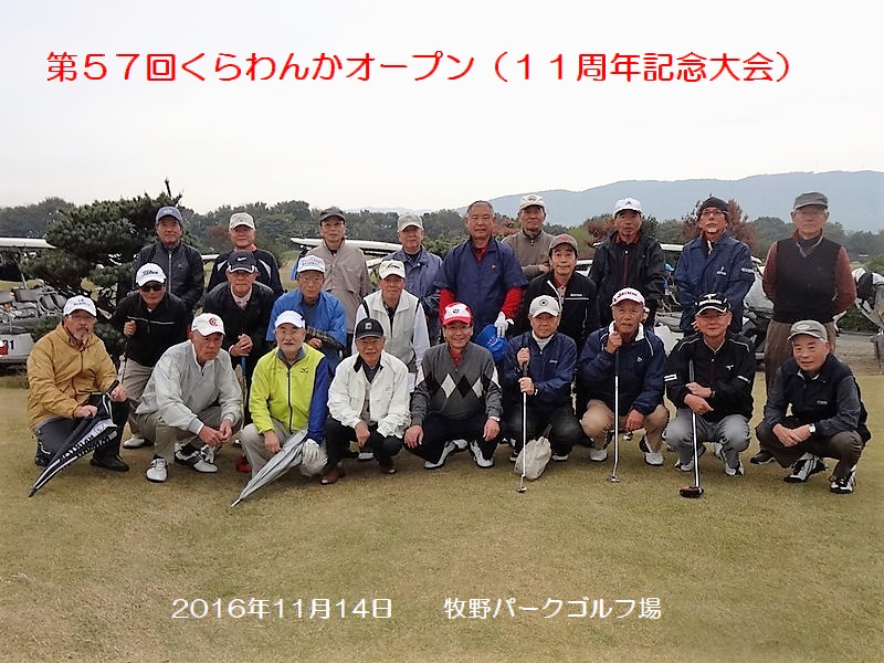 第57回くらわんかオープン(11周年記念大会)は11月14日に牧野パークゴルフ場にて開催し、23名が参加されました。降ったり止んだり小雨がぱらつく空の下でしたが、まずまずのゴルフ日和となりました。