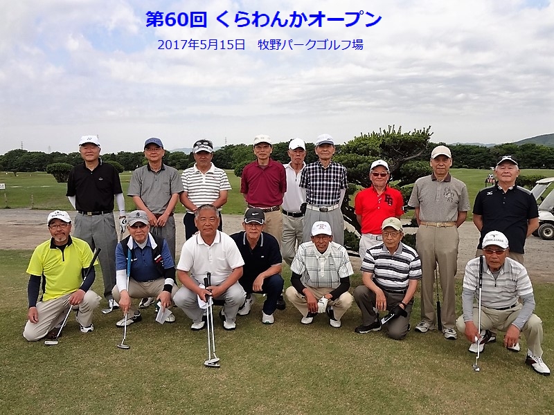 第60回くらわんかオープンは5月15日に牧野パークゴルフ場にて開催し、16名が参加されました。初夏にしては高い気温と強い風の中でのプレーとなりました。