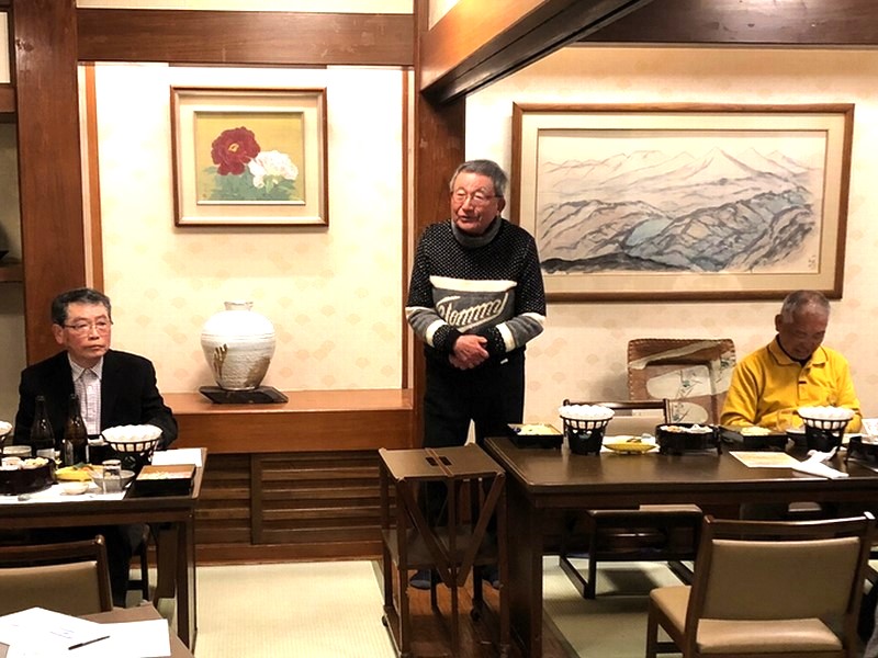 優勝者の中井さん(15班)のあいさつ、今回から参加した3名の新入会員の紹介では平畑さん(3班)、幸田さん(5班)、岡山さん(7班)からは楽しくプレーでき、これからも参加したいとのことでした。また、今日が誕生日の四角さん(3班)とこの会の最年長の6月に87歳になる松前さんからもまだまだ頑張りたいと話がありました。