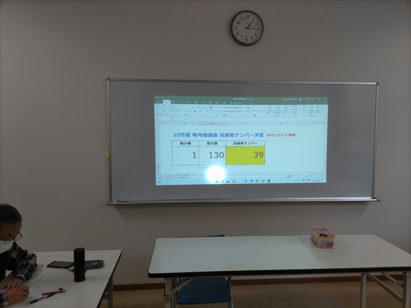 | 2022年10月度 | 11/4 | 130名 | 5班 小林 正夫さん 7班 徳田 博さん |