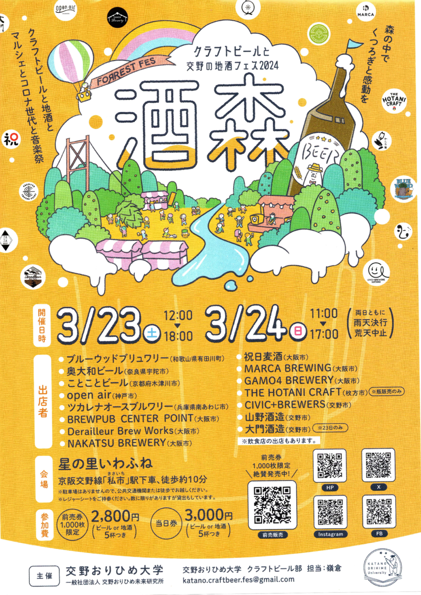 【おりひめ大学 主催】FORREST FES IN KATANO(クラフトビールと交野の地酒フェス2024)
