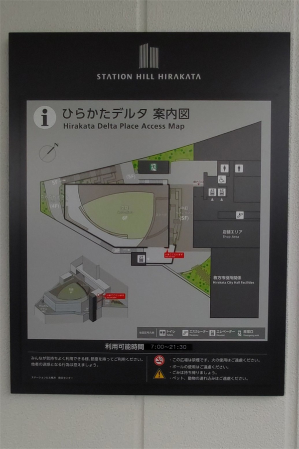 また、行政サービスフロア(5F)の隣には「ひらかたデルタ」があり、見晴らしもよく、子どもを遊ばせるには絶好の場所です。