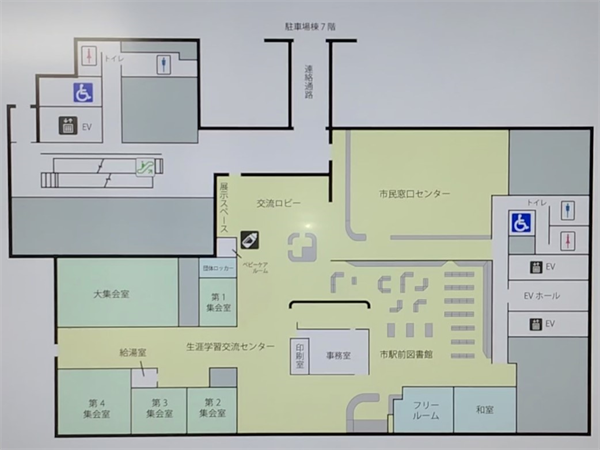 具体的には、5Fに「生涯学習交流センター」「市駅前図書館」「市民窓口センター」