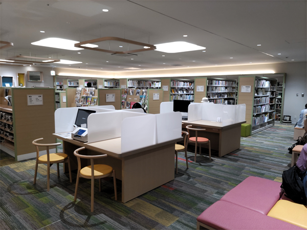 「市駅前図書館」では、いろいろな場所で本が読めて、楽しめそうです。また、新しいサービスも始まったそうです。