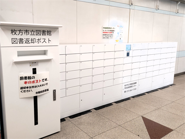 2)「予約図書受取ロッカー」「図書返却ポスト」が、京阪枚方市駅2階の連絡通路に設けれており、図書の受取・返却が便利そうです。