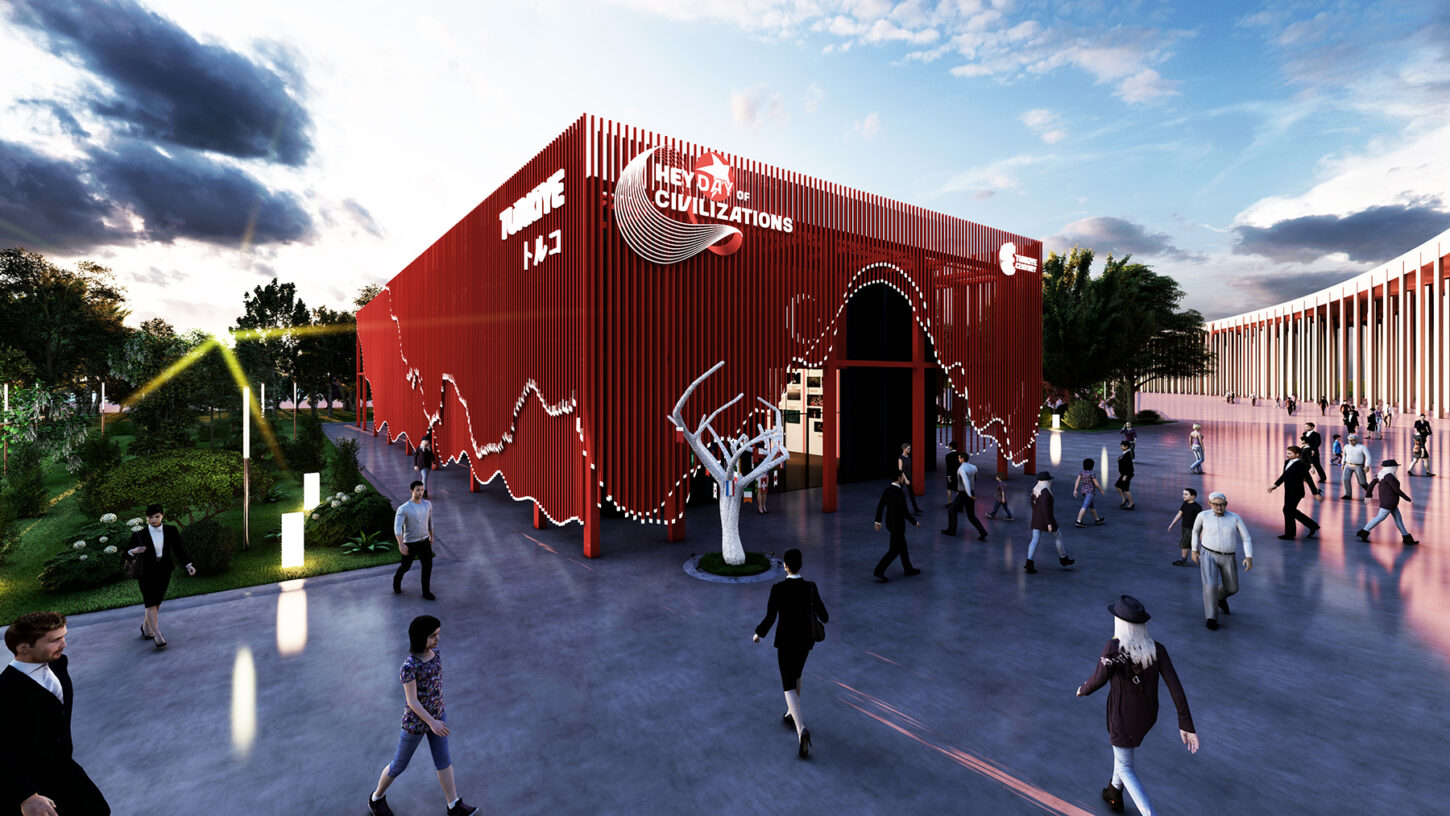 文明の交差点であるトルコは、文化的な貢献を通じて命をつなぐという、世界史において独自の役割を果たしています。トルコパビリオンのテーマである「文明の黄金時代」は、トルコと日本の国旗に描かれた太陽と月で象徴される昼と夜の概念を具現化するものです。