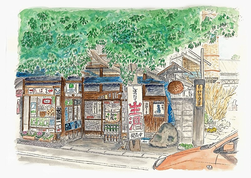 赤城の造り酒屋さん、昔の面影があってなかなか良いでしょう?  彩りを少し鮮やかにするために、写真には無かったオレンジ色の車を追加しました。