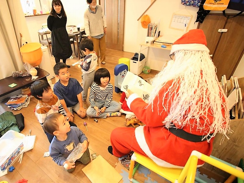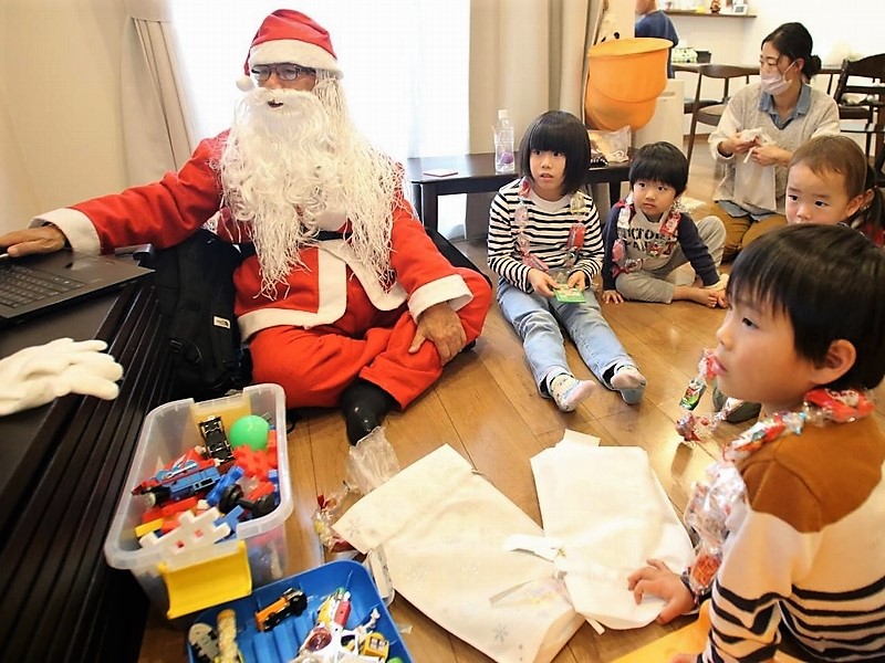 サンタの「プレゼント手渡し」と「マジックショー」と子供達と一緒に鑑賞できる方法で「絵本の読み聞かせ」を行って来ました。