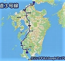 国道3号線 : 北九州~鹿児島間 391km (2020年12月末までに65kmを踏破済)