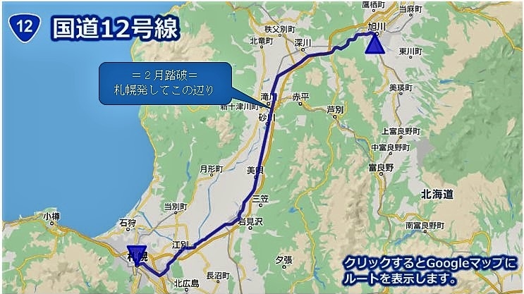 未だ行ったことのない、旭川迄は直ぐそこだ。3月も頑張るぞ!!。