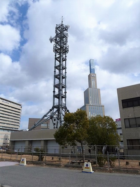 関西医大タワーの写真ですが、遠くにあるものは「視角」の関係で、小さく見えるということだけではないのでしょうか。