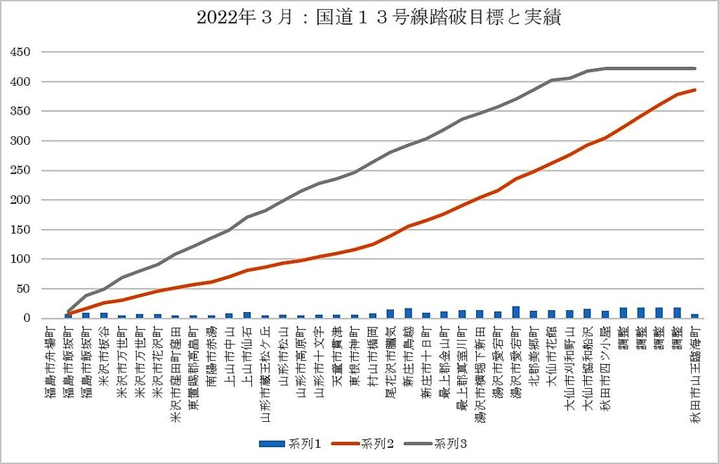 3月は、国道13号線を余裕で踏破出来ました。通年の1ヵ月分の工程で設定した目標でした。