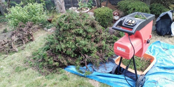 剪定作業そのものは、どの造園屋にも負けない(つもり?)時間で終わります。 剪定した残渣はしっかり細断します。小枝シュレッダーに概ね3回は掛けて細かくします。 庭には穴を掘ってその残渣と糠等の腐蝕促進剤を撒き、元の土を被せ乍ら土に戻していく。
