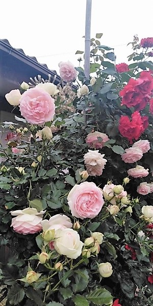 お向かいの家のバラはすっかり盛りが過ぎてしまいました。