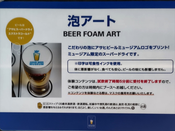 試飲時間は約20分間、1人2杯までで、スーパードライや様々なビールや体験コンテンツ、ソフトドリンクもご用意、おつまみの提供は中止していました。