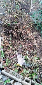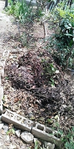 シュレッダーが故障したので剪定ばさみでの細断の為、半年前より粗い細断となっています。またシルバー人材センターの残渣が放置してあり、ついでに細断投入しました。今回の作業は(右端写真)で完了。