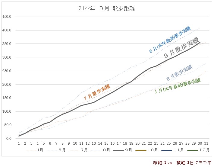 - 第三(最終)目標の1万km未達日が1日。終日雨天の日 サークルへはバスで行き帰りは歩けました。