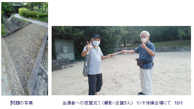 お二人の当選者には、超(?)豪華(?)賞品(?)をお送りします。尚、授賞式は勝手ながら「香里ヶ丘中央公園」にてラジオ体操仲間の立会の元で執り行います。 (戦争したがっている大統領の手口に似て、極めて心苦しい限りです?)