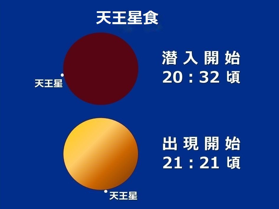 そして同時に出現する天王星食は、惑星である天王星が月に隠される現象です(正確には「天王星の掩蔽(えんぺい)」と表現します)。天王星食そのものは、地球全体で見ればそれほど珍しい現象ではありませんが、月食と同時に起こることはめったにありません。次回は84年後2106年の部分月食で、皆既月食と同時となると213年後2235年まで待たなければなりません。今しか観れない宇宙の神秘をご覧いただければ幸いです。