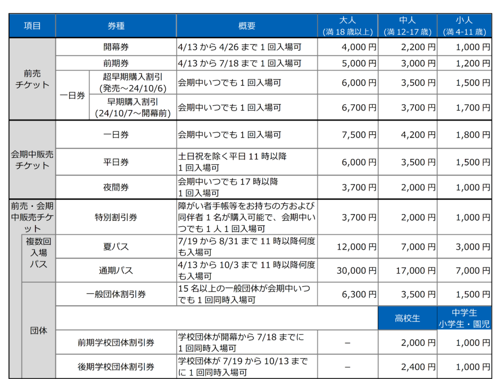 一日券の早期購入割引販売は2024年10月7日から2025年4月12日まで。
