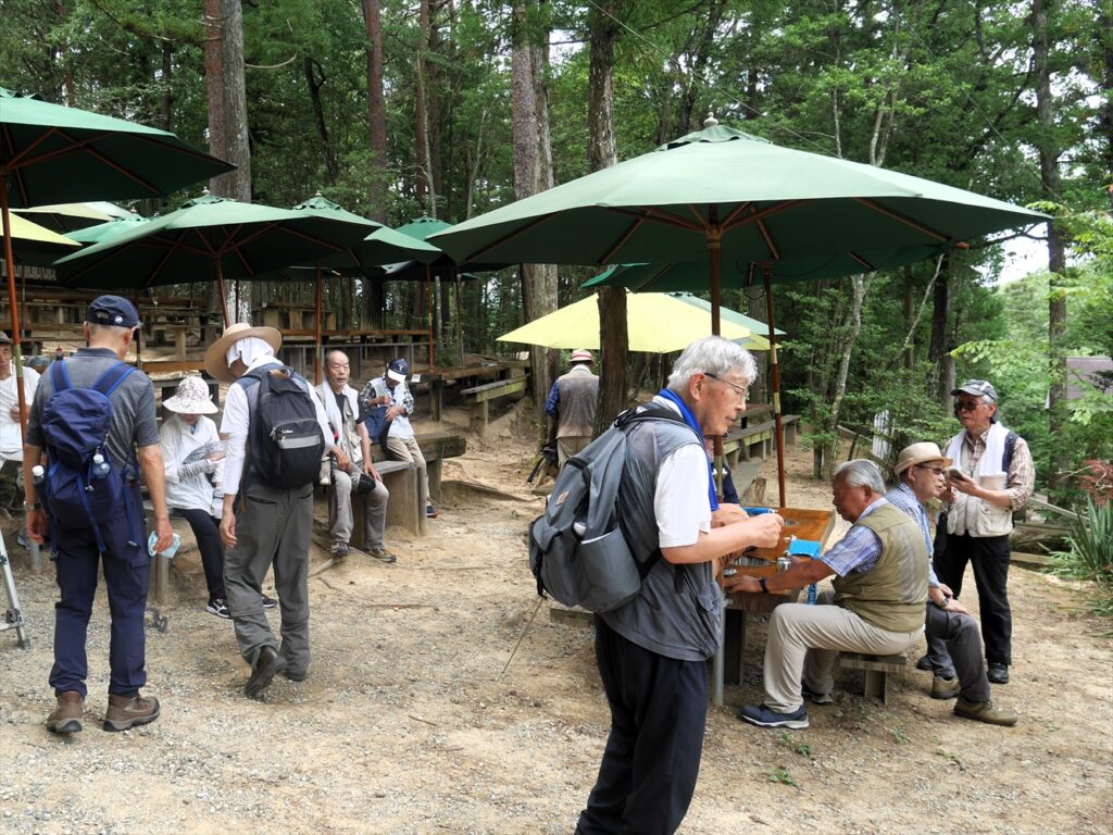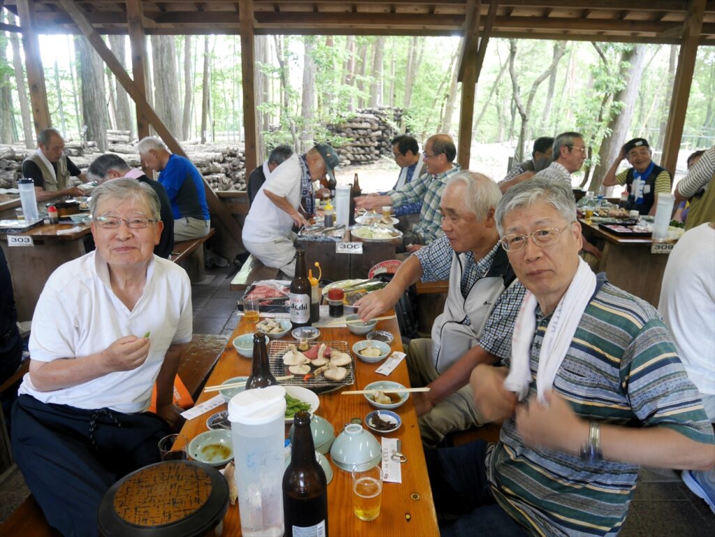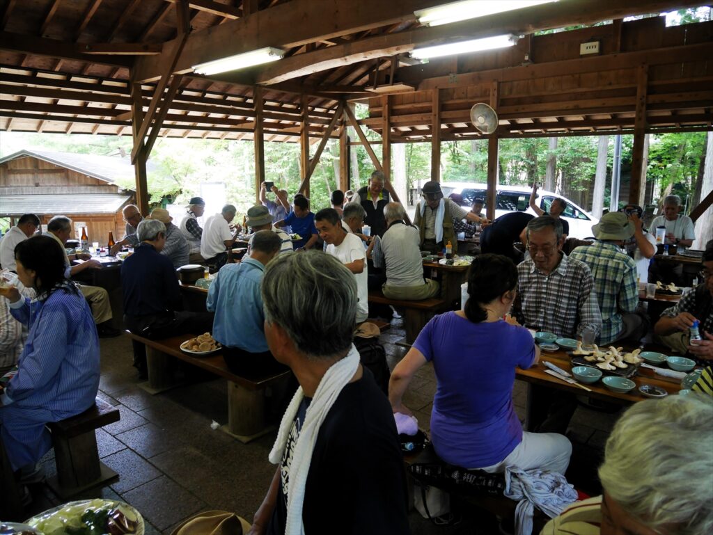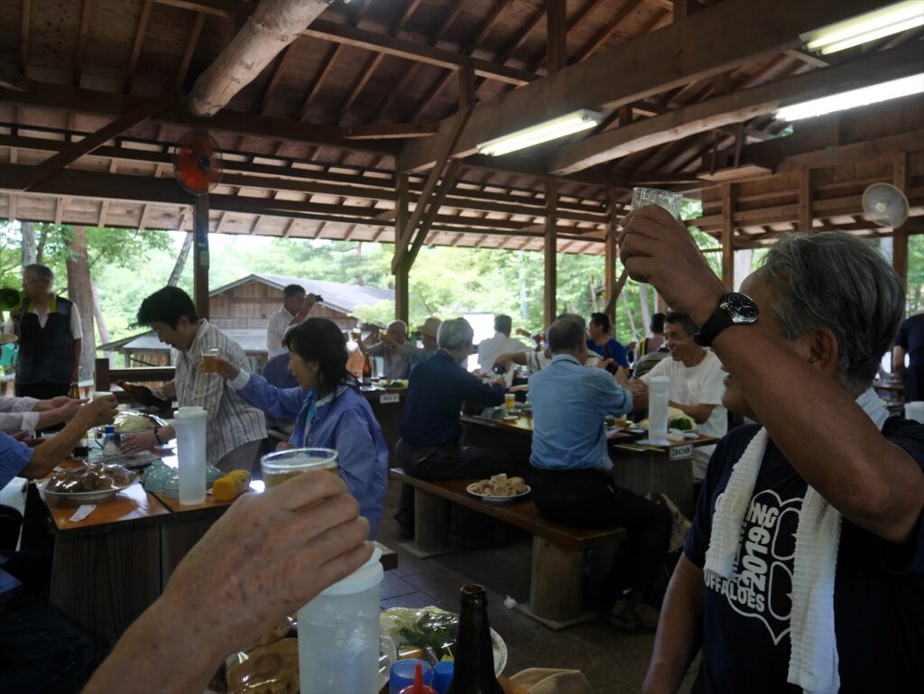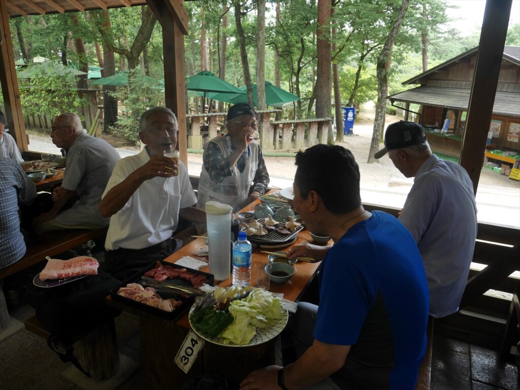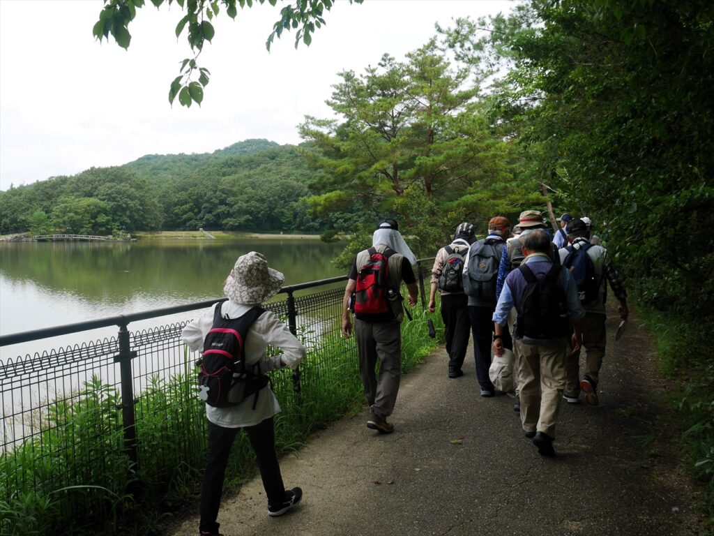 一般組の残りの方は、「JR新三田駅」を出発し、「八幡宮」から「福島大池」を経由し、BBQ会場である「しい茸園有馬富士」へ向かいます。歩行途中は、日陰もあり、結構 気持ちよく歩けました。3支部合同BBQ会は、いろいろな人と交流し、じゃんけん大会賞品(椎茸)までいただきました。帰りは、みんなアルコールが入っているので、送迎バスで、「新三田駅」経由で帰宅しました。