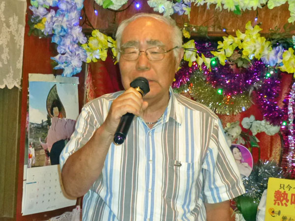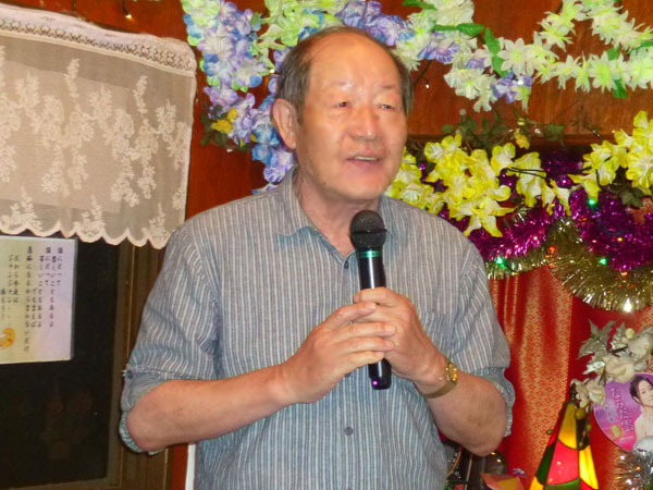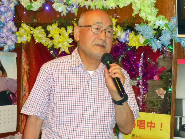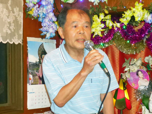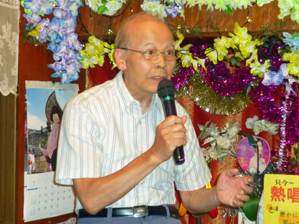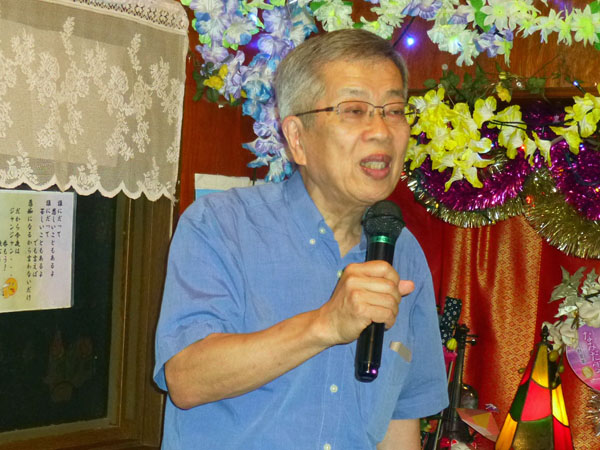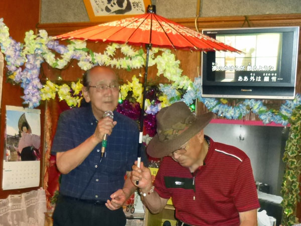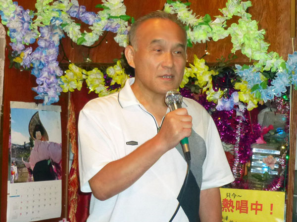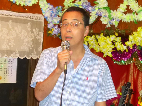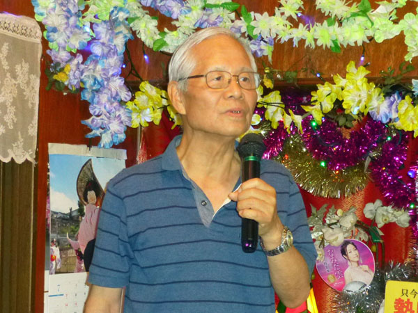 武田 正規さん(北)が今月で退会されるということで、ご挨拶を頂きました。南支部役員の松島 可美さんが、同好会活動の取材として参加され歌唱もされました。両組に出席されている世話役の方は、どちらか片方のみを掲載しています。