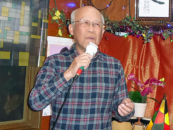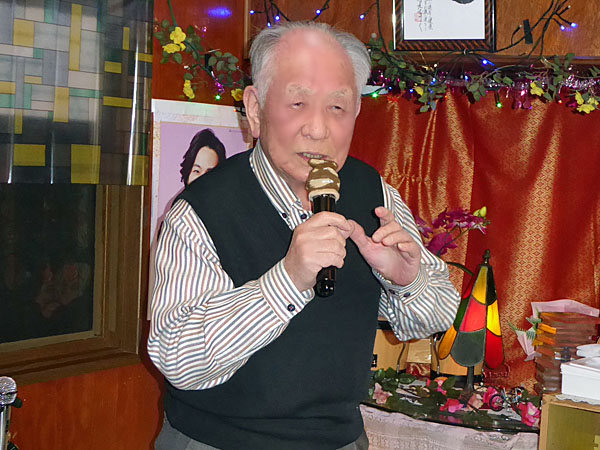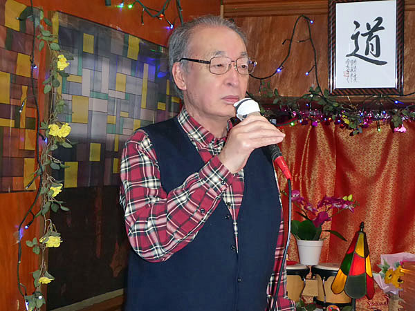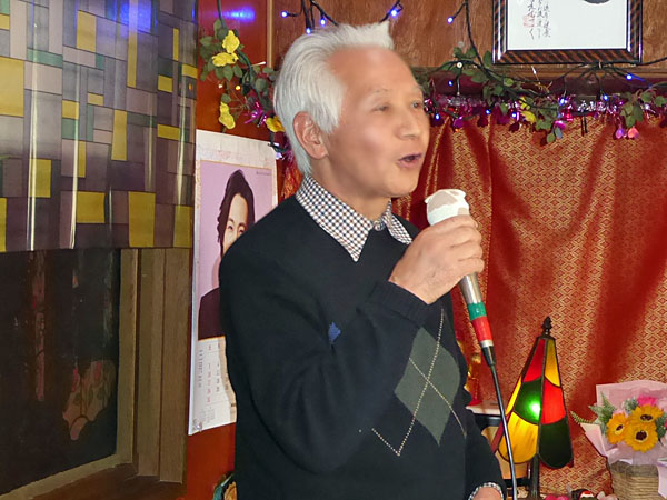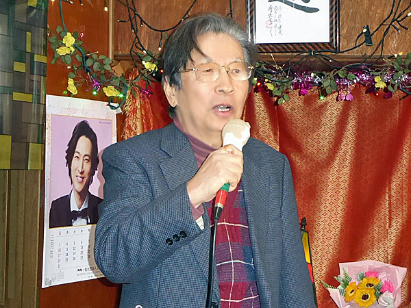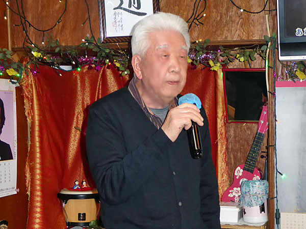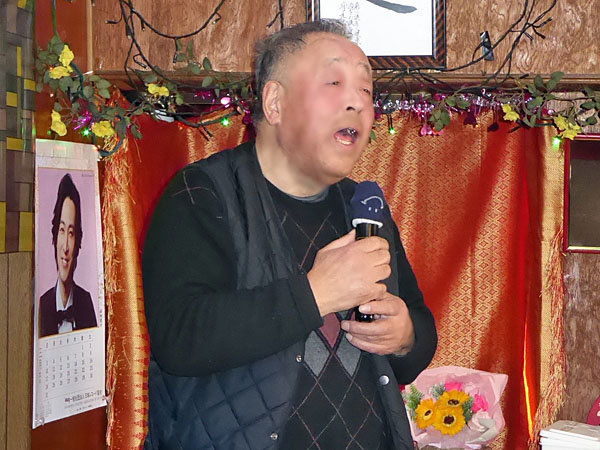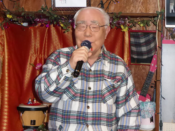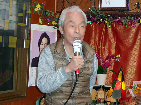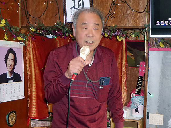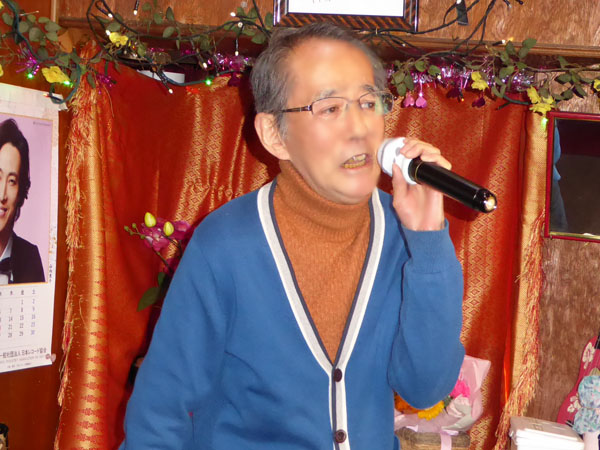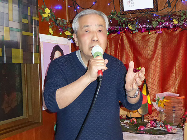 当日の歌唱順に皆様の熱唱写真を紹介します。絶えず新曲にチャレンジする方、懐メロ中心の方、「酒」とか「女」とかテーマを決める方、原曲の歌手を一人に絞る方等がおられ、皆様の個性・好みが分かります。