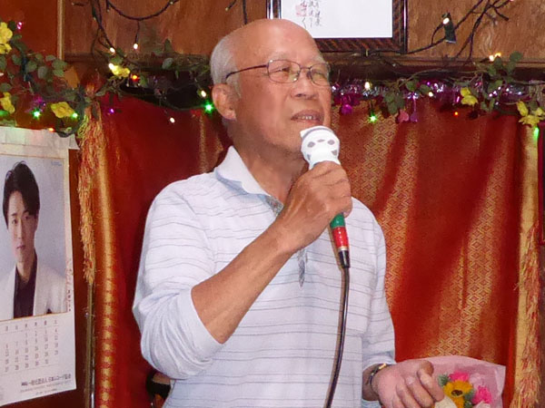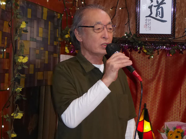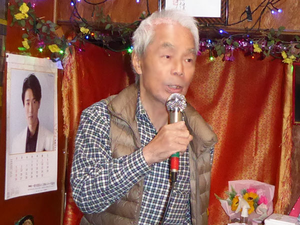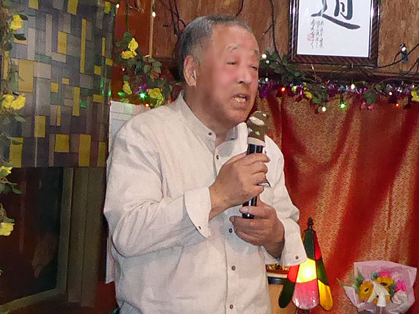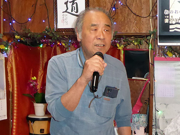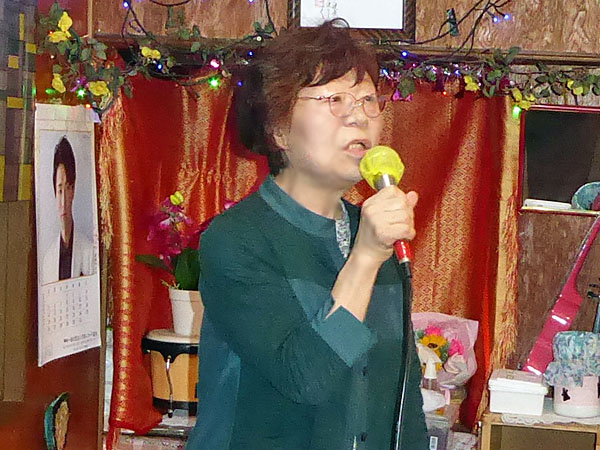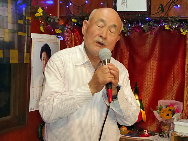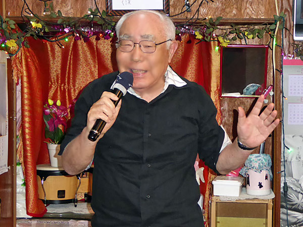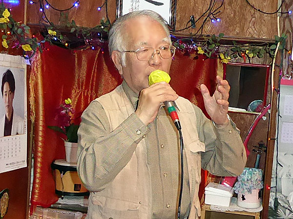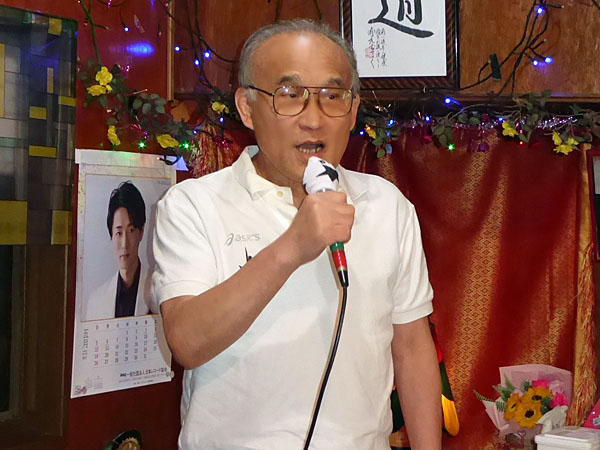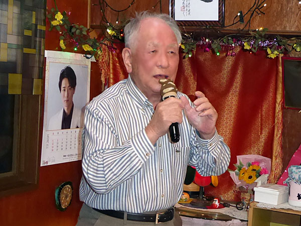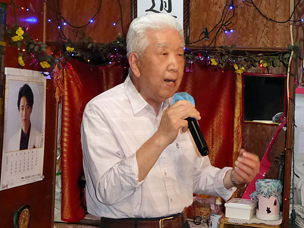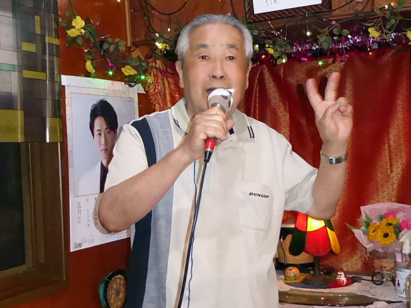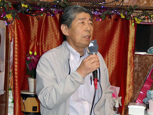 当日の歌唱順に皆様の熱唱写真を紹介します。絶えず新曲にチャレンジする方、懐メロ中心の方、「酒」とか「女」とかテーマを決める方、原曲の歌手を一人に絞る方等がおられ、皆様の個性・好みが分かります。