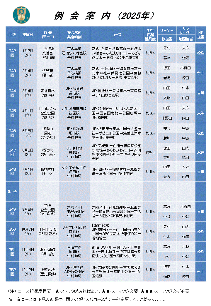 くらわん会 例会案内 2025年度