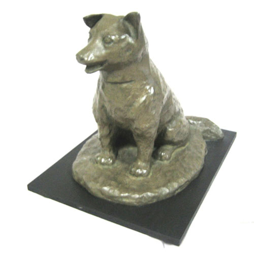 和歌山の甥の家に行ったときのこと、甥の三女に粘土細工の話から、甥の家に飼っている犬を彼女の粘土でいたずらに作ったところ、大変喜んでくれましたので、調子に乗って本当の像を作ってあげると約束をしてしまいました。自分としてはよく店などで売っている犬の置物程度のつもりで引き受けたのですが、いざ教室で作り始めると先生から置物と芸術作品は異なると注意され、初めて安請け合いに気づきました。先生からは犬の解剖学の本のコピーをいただき、また自分なりにも犬の本を購入し、これらの資料を基に一ケ月は犬の筋肉と骨格の勉強をして制作に臨みました。おかげさまで、芸術作品制作の心がけるべき基本を体得することができました。制作では犬の毛の柔らかさを表すタッチについて習得しました。この作品も2005年度の創造展に応募し入選させていただき、大阪市立美術館に展示されました。 |