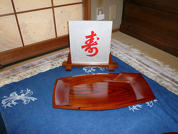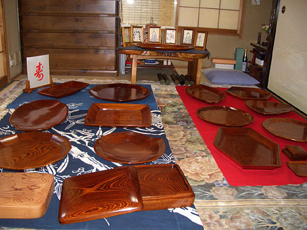 このようにして制作する年間創作個数は、展覧会出品用の大盆等の大物2~4点、額縁等の小物5~6点で、これまでの累計点数は、大物50点、小物100点程度になるそうです。 その中で、自信作となるのは、1994年の第23回展に初入選して以来、今年の第37回展までの15年間連続入選している日本伝統工芸近畿展に出展した作品と、2005年に初入選した第10回日本伝統工芸木竹展全国大会に入選した作品だそうです。