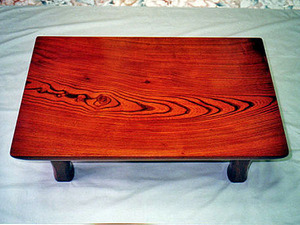合計すると11~14年経過した物となります。目的に適合したケヤキ、トチ、カエデなどの素材は、銘木店で購入するのが普通であり、木材の大きさにもよるが、通常価格は約5~10万円の物を使用する、高級材料と言われる物(特に木目の美しい材料)は、限がないほど高価だそうです。